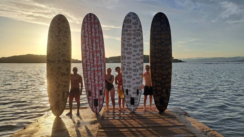 le pack comprend 1 sup avec pad Eva et cordage élastique pour tenir vos affaires 1 aileron amovible 2 ailerons fixes 1 leash 1 pagaie 1 kit de réparation 1 sac de transport pouvant être aussi mis en sac à dos 1 gonfleur manuel.