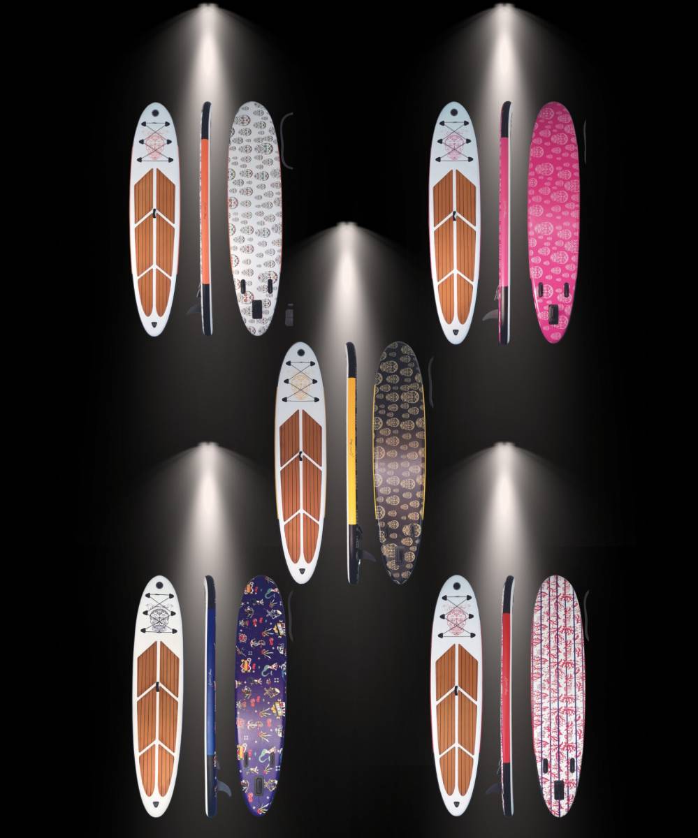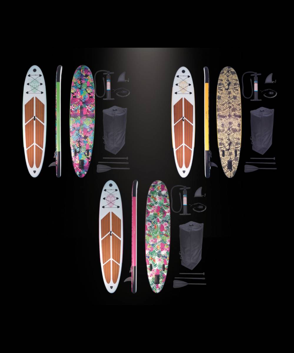 Paddle robuste technologie Drop Stitch et toile de semi-rigide extrêmement maniable et sécurisant. taille 366cm de long sur 84cm de large sur 15 cm d'épaisseur charge max 180 kg 8 motifs différents aux choix